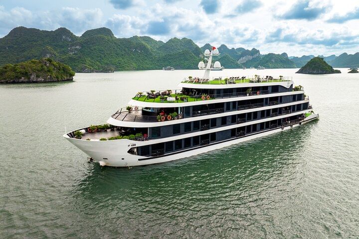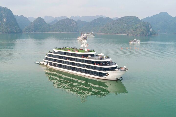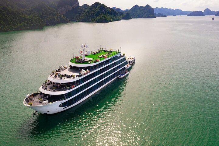 Embark on a luxurious 2-day, 1-night cruise from Hanoi to explore the stunning Ha Long Bay and Lan Ha Bay. After a comfortable transfer, enjoy a welcome drink while cruising past breathtaking islands like Gia Luận, Thoi Quyt, and Ngon Tay. Experience kayaking through the majestic Sung and Toi Caves, swim in peaceful waters, and discover hidden lagoons. Relax with a Sunset Party, soak in the Jacuzzi, and savor traditional Vietnamese tea as the sun sets. On day two, greet a serene sunrise and visit the charming Tra Bau fishing village for more kayaking. After an early lunch, enjoy the scenic journey back to Hanoi, taking home unforgettable memories from this exclusive cruise. Book now for the perfect mix of luxury, adventure, and natural beauty!