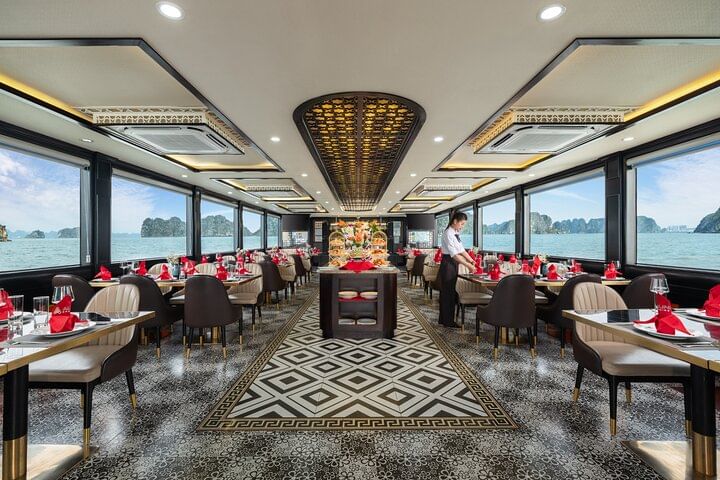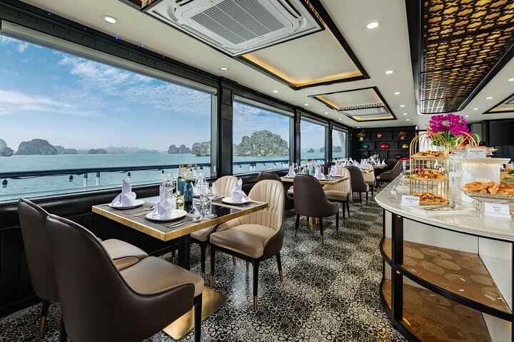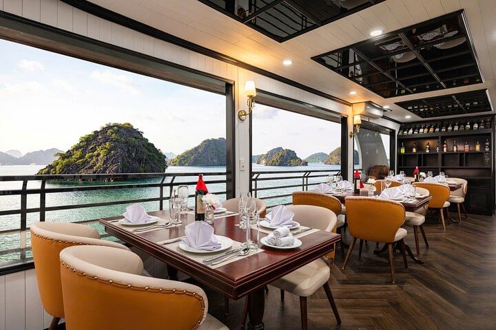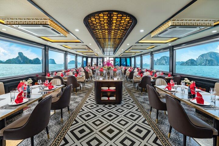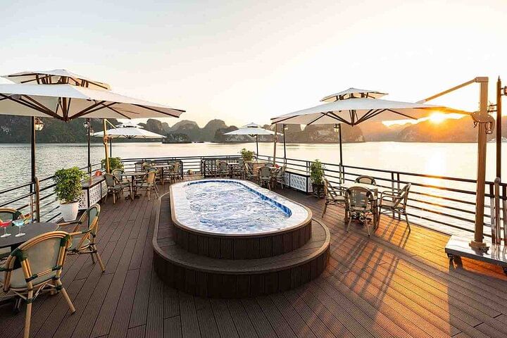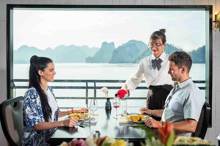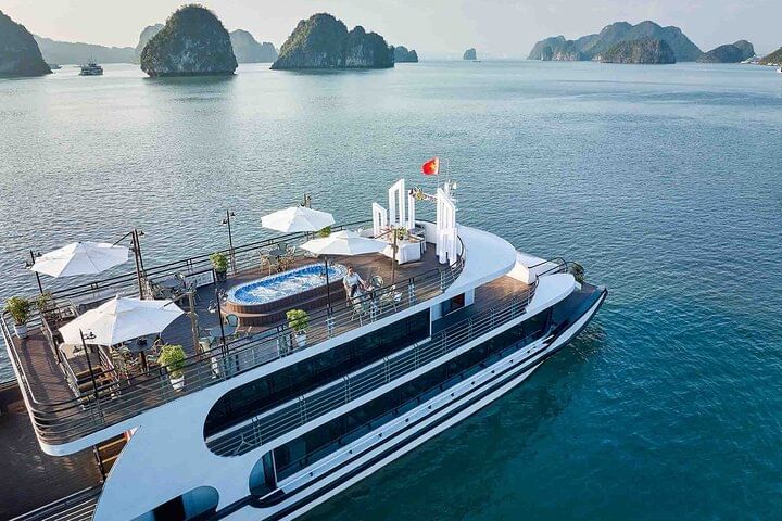 Experience the ultimate in luxury with a 5-star Ha Long Bay cruise from Hanoi, featuring all-inclusive service for a seamless and unforgettable journey. Begin with a scenic drive to Ha Long Bay, then board a luxurious cruise offering a seafood buffet lunch while enjoying spectacular views of iconic landmarks like Dog Stone, Incense Burner Stone, and The Kissing Cocks. Explore the magnificent Sung Sot Cave, kayak through the tranquil waters of Luon Cave, and visit Titop Island for swimming or hiking with breathtaking panoramic views. Unwind during a relaxing sunset party onboard, sipping authentic Vietnamese tea and fresh juices. This all-inclusive tour perfectly combines comfort, adventure, and stunning natural beauty in one of the world’s most remarkable destinations.