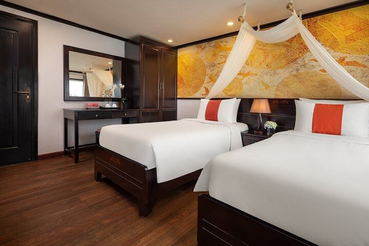 Traveling to Vietnam, a visit to Halong Bay — a UNESCO World Heritage Site and Vietnam’s most famous destination — is a must. Join an unforgettable overnight cruise to enjoy sparkling blue waters, stunning limestone islets, and breathtaking caves. Stay in a private ensuite cabin with a balcony, savor delicious meals, and take part in onboard activities like cooking classes, squid fishing, and tai chi. Explore Luon Cave by kayak or bamboo boat, hike to the viewpoint on Ti Top Island, and visit the spectacular Sung Sot Cave.
