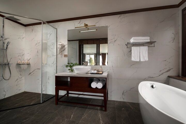Dora Cruise features a steel hull ensuring maximum safety for all guests. With 22 fully equipped luxury cabins, each with a private balcony and bathroom, an elegant detached restaurant, a spacious sundeck, gym, and spa facilities, we guarantee five-star service and a truly unforgettable experience. Explore the stunning and unique destinations of Lan Ha Bay and Halong Bay, including swimming and kayaking at Ba Trai Dao Islet, visiting Dark & Bright Cave (Hang Sang & Toi), Con Vit Islet (Duck Islet), Thumb Islet, and Gia Luan Harbor. Convenient pick-up services are available from Hanoi or Halong, making your journey seamless as you enjoy the breathtaking blue waters under the golden sunshine.