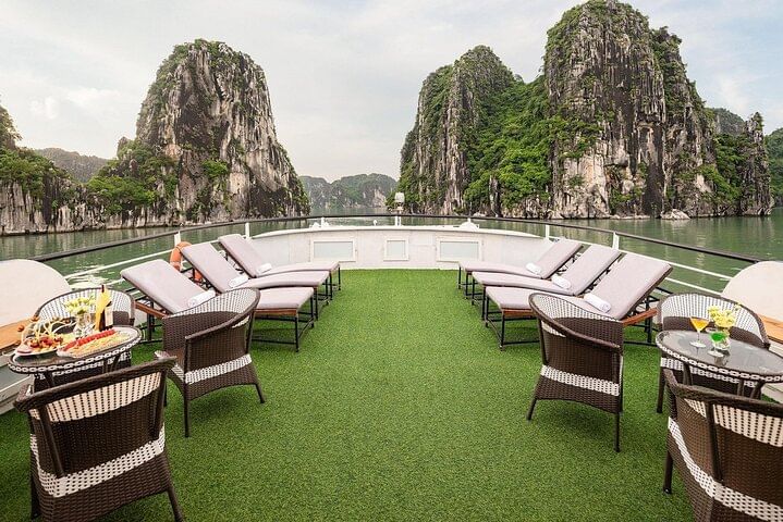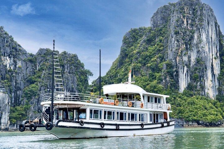 Discover the breathtaking beauty of Ha Long Bay on this all-inclusive 1-day deluxe cruise with convenient round-trip transfers to Tuan Chau Marina. Sail through emerald waters while admiring iconic limestone formations such as Incense Burner Rock and Fighting Cock Rock. Enjoy a delicious traditional Vietnamese seafood lunch onboard before exploring Sung Sot Cave, the largest and most spectacular grotto in the bay. Continue your adventure with kayaking or a peaceful bamboo boat ride through Luon Cave, then relax or swim at Titop Island, followed by a hike to its peak for panoramic views. End your day with a sunset party on the sundeck featuring red wine, fresh fruit, and local snacks. This full-package tour includes all entrance fees, meals, activities, and comfortable transfers—perfect for travelers seeking a luxurious and unforgettable Ha Long Bay experience.