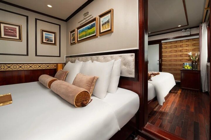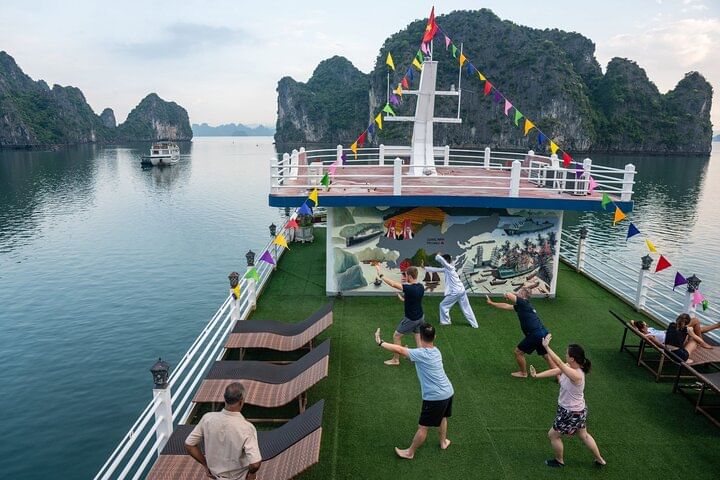 Experience the ultimate luxury with our Halong & Bai Tu Long Bay Deluxe Cruise – 2 Days 1 Night Tour from Hanoi. Departing conveniently from Hanoi, this all-inclusive journey takes you deep into the breathtaking UNESCO World Heritage-listed bays of Ha Long and Bai Tu Long. Cruise aboard a deluxe ship featuring elegant cabins, gourmet dining, and panoramic sundecks. Explore stunning limestone karsts, mysterious caves, and pristine islands while enjoying activities like kayaking, swimming, and Tai Chi at sunrise. With all meals, accommodation, transfers, and entrance fees included, this tour offers the perfect blend of adventure and relaxation. Discover the natural wonders of northern Vietnam in style and comfort on this unforgettable 2-day cruise.