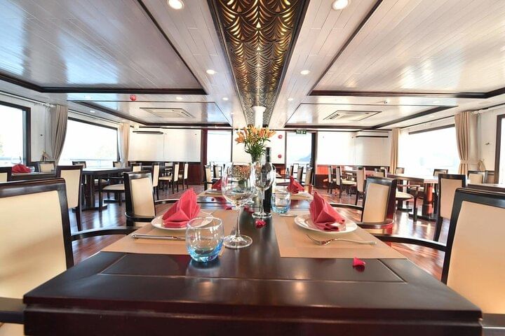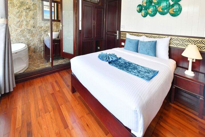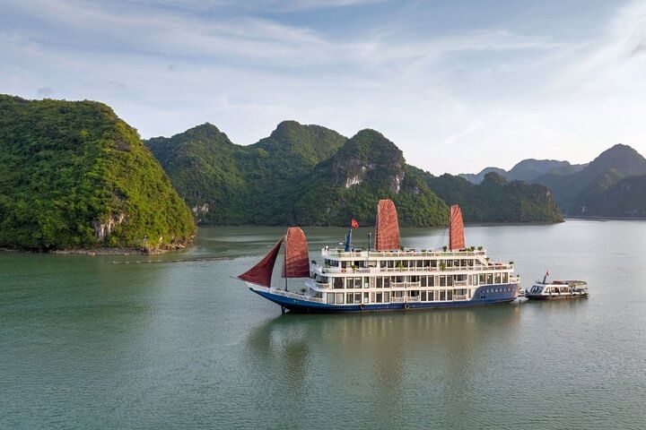 Experience the stunning beauty of Halong Bay and Lan Ha Bay on a 2-day, 1-night Verdure Lotus Classic Cruise. Enjoy activities like kayaking through tranquil lagoons and limestone caves, and join a fun Vietnamese cooking class on board. Relax in a comfortable cabin with spectacular bay views, savor delicious local cuisine, and immerse yourself in the natural and cultural wonders of this UNESCO World Heritage site.