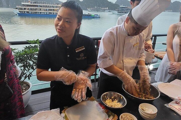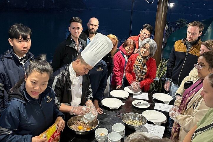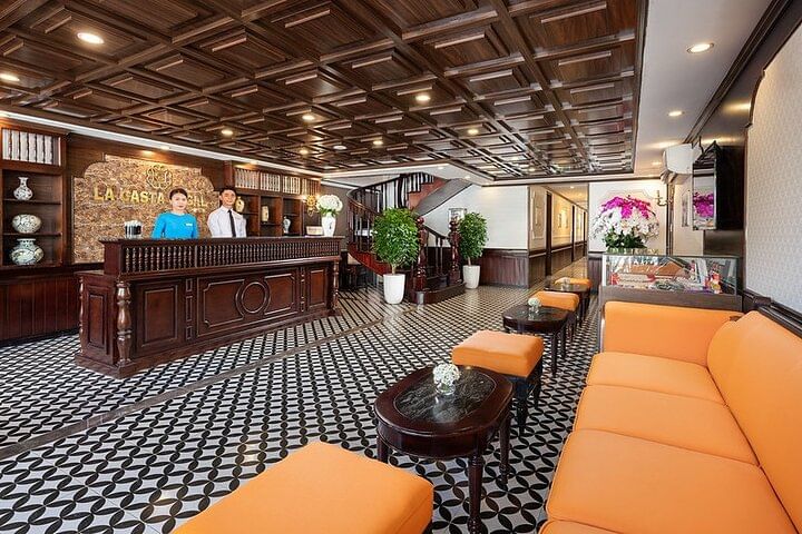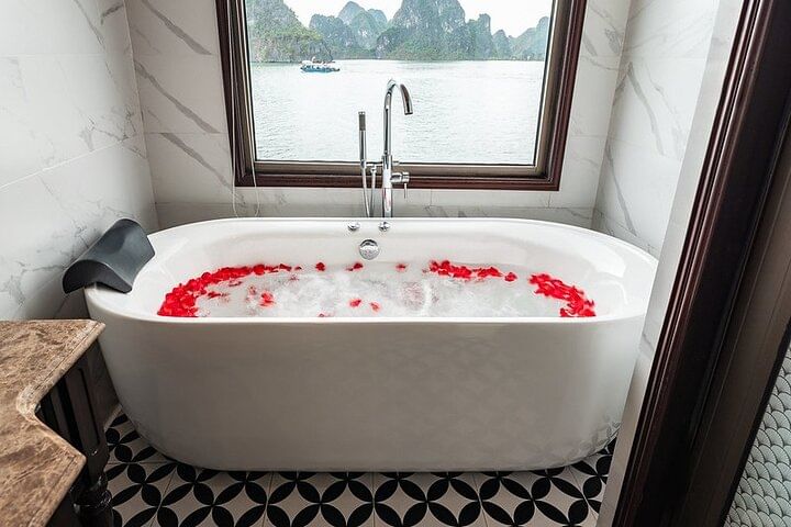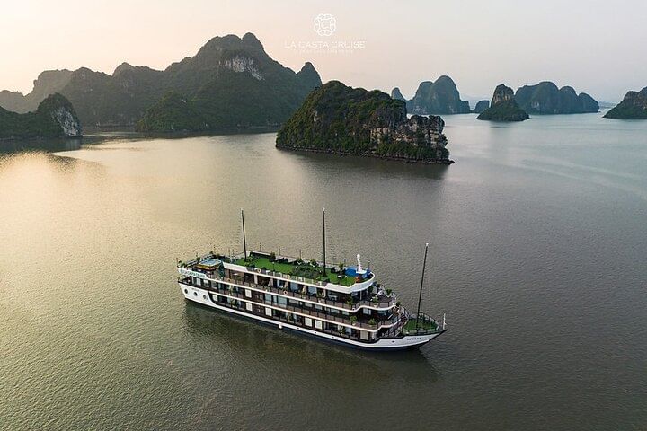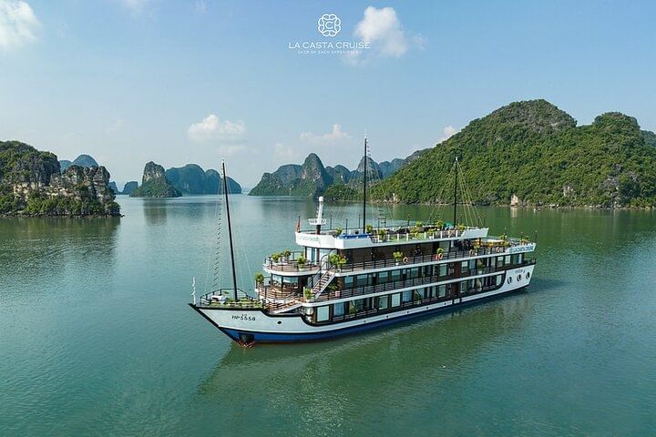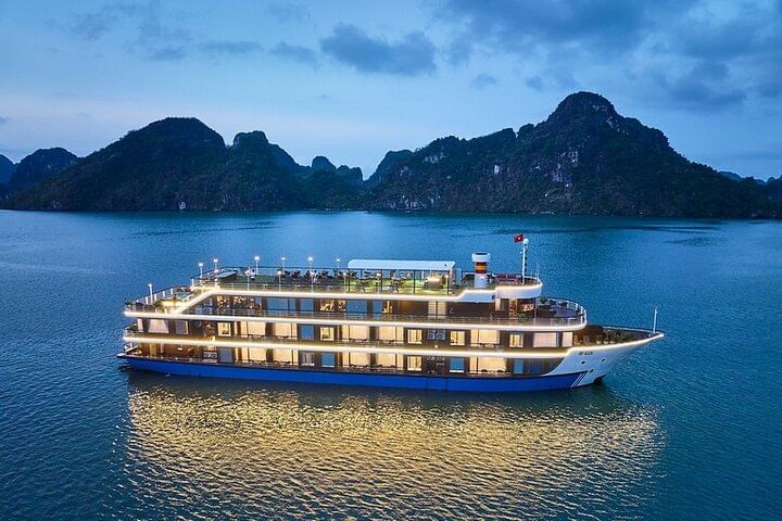 This luxury cruise offers an unforgettable journey, departing from Tuan Chau International Marina and passing through the famous areas of Halong Bay to the hidden paradise of Lan Ha Bay in the south. With only 22 elegant cabins starting at 28 sqm, guests can choose from Junior Suite, Senior Suite, or VIP (Honeymoon) Suite, each designed to suit different traveler needs. The cruise features top-notch amenities including an outdoor Jacuzzi, spa services, themed parties on request, and a stylish bar and restaurant. Enjoy exciting activities such as biking, kayaking, sunbathing, squid fishing, afternoon tea, and cooking classes. The tour can also start conveniently from Hanoi, offering a seamless and luxurious way to explore the breathtaking landscapes of Tonkin Bay, including Halong Bay, Lan Ha Bay, and surrounding areas.