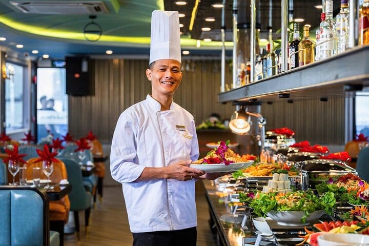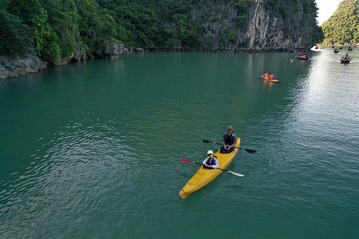 Discover the beauty of Ha Long Bay in one unforgettable day aboard the La Casta 5-Star Daily Cruise. Enjoy a welcome drink, delicious lunch, and a sunset party while exploring stunning sea caves and Titop Island. Complimentary kayaking is included, and an English-speaking guide will assist throughout the journey. Optional packages with round-trip transfer from Hanoi are available, offering a seamless luxury day cruise experience in Ha Long Bay.