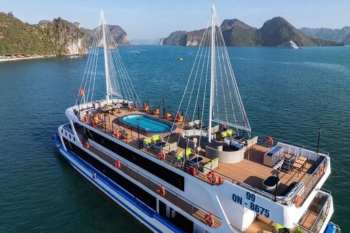 This full-day luxury cruise offers an exceptional 7-hour itinerary packed with exciting activities along Halong Bay’s most famous route. Highlights include exploring Sung Sot Cave, the largest cave in Halong Bay, kayaking at Luon Cave, and visiting Titop Island, known for its crescent-shaped beach and stunning panoramic views. Ideal for travelers who want to experience the best of Halong Bay without an overnight stay. For those choosing the Hanoi departure option, convenient hotel pick-up and comfortable transfers are provided to ensure a seamless start to your journey.