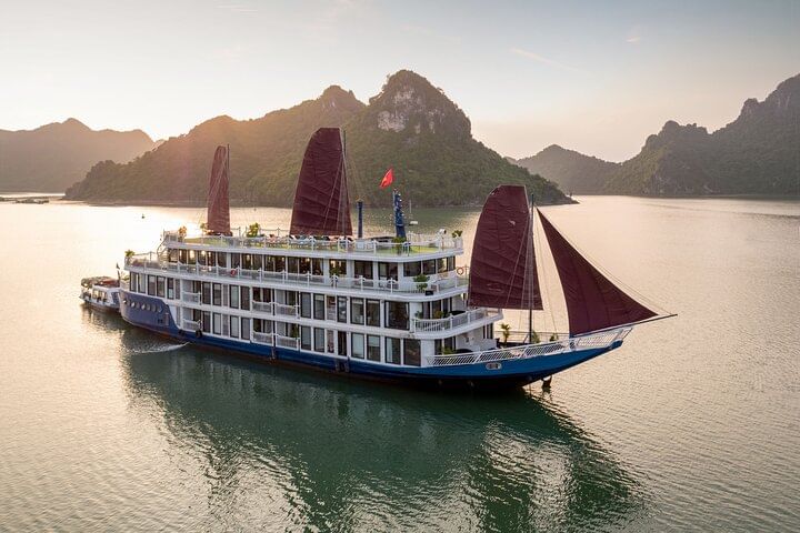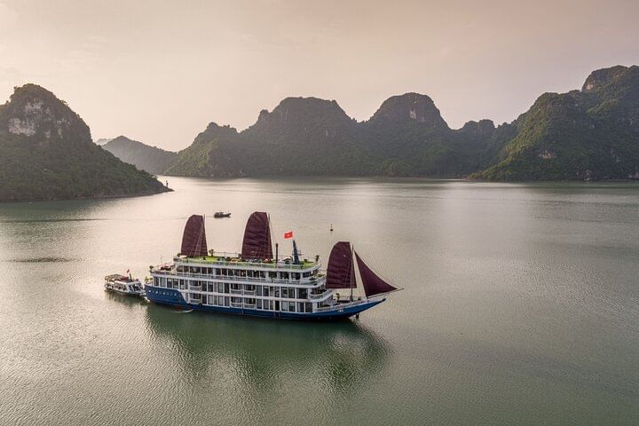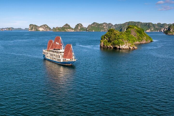Experience the ultimate in luxury travel with an elegant cruise through Halong Bay and Lan Ha Bay. Enjoy spacious cabins and exclusive suites featuring private balconies and sophisticated Indochine-inspired interiors. Delight in gourmet dining with multiple fresh-cooked meals served amid stunning panoramic views. Explore the serene and less-crowded Lan Ha Bay, visiting iconic sites such as Ba Trai Dao and the Dark & Light Caves. Engage in exciting activities like kayaking and squid fishing to make your journey even more memorable. The all-inclusive package typically includes comfortable round-trip transfers from Hanoi’s Old Quarter, ensuring a seamless and unforgettable luxury cruising experience.